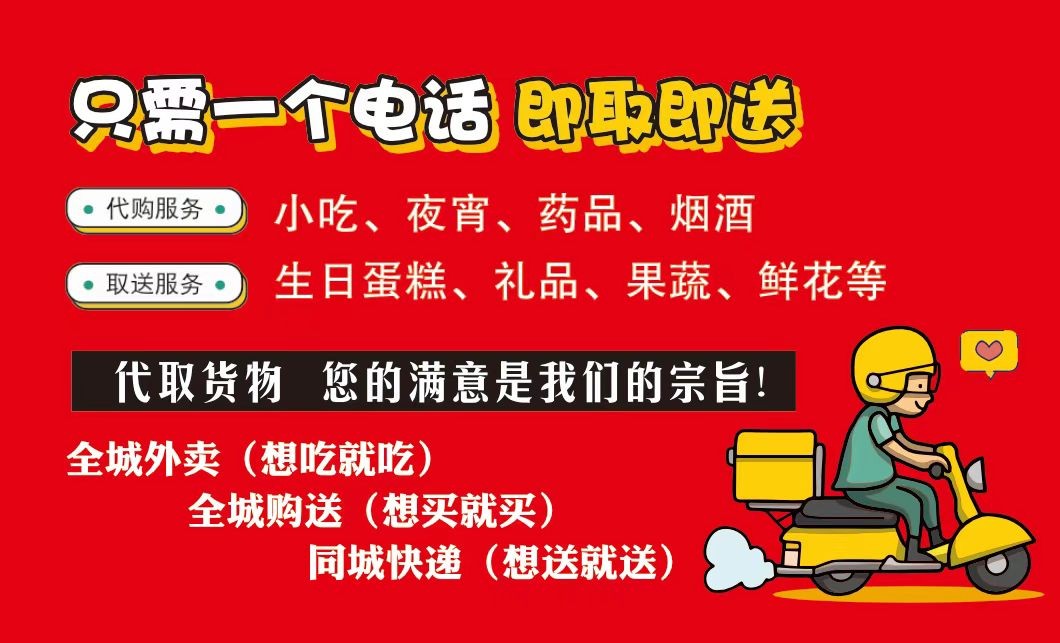 包括取,送文件/物品,快遞,幫買菜,日用品,送貨上門,(24小時電瓶搭車),電話也是微信,有需要的聯系吧!