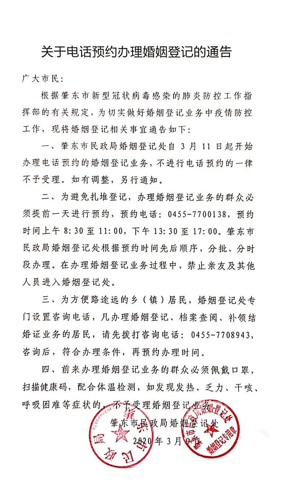 肇東婚姻登記的通告!