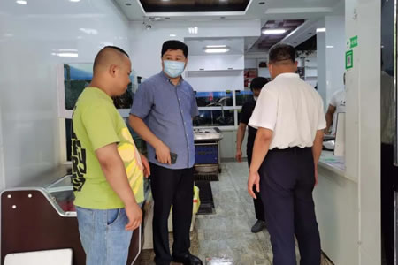 在餐飲店檢查時,田宇副市長要求飯店、海鮮店等食品經營場所,強化防疫“三寶”措施的執行力度,落實好食品安全主體責任,嚴格履行食品進貨查驗義務。