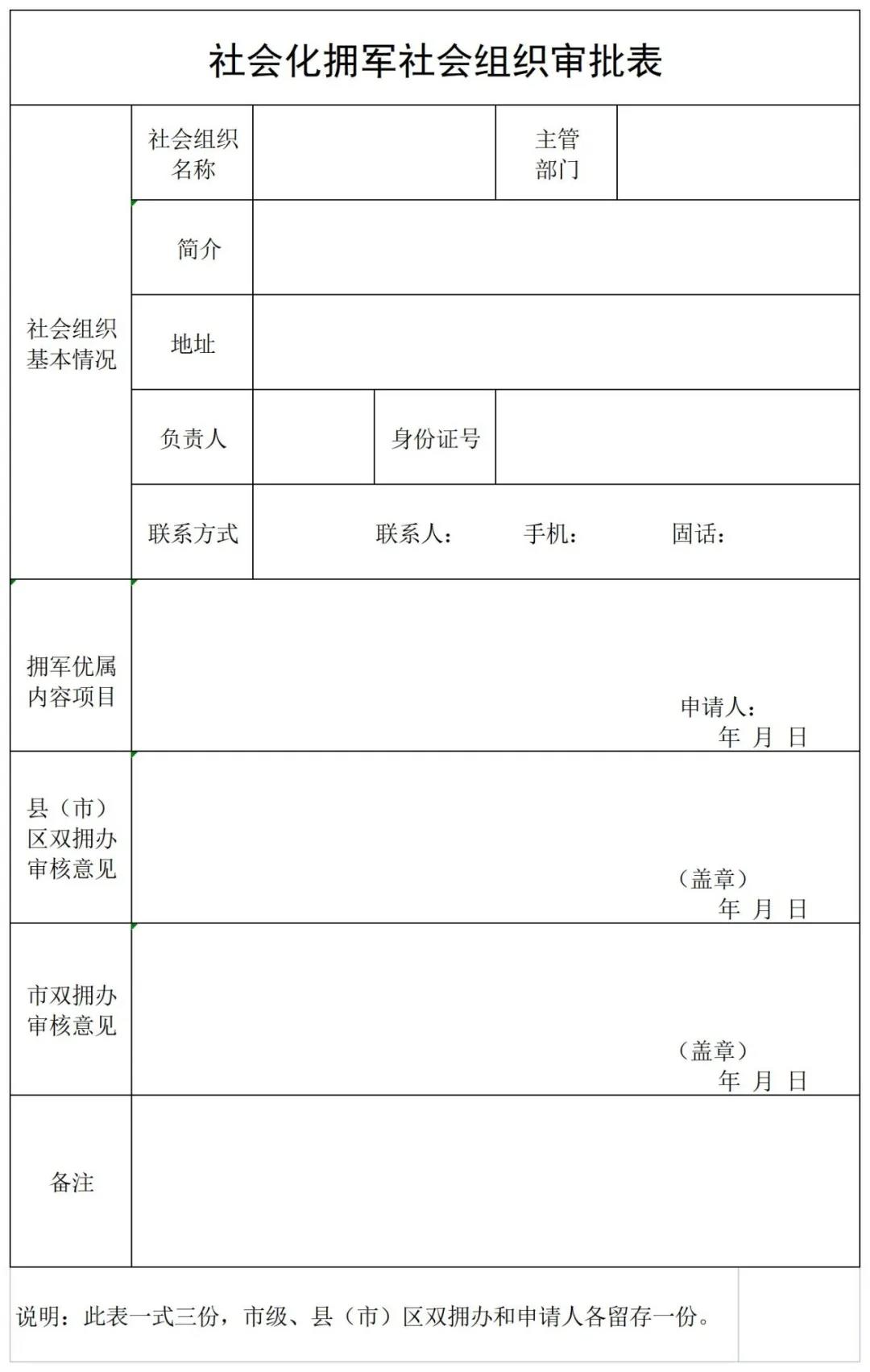 附件:《社會化擁軍企業(社會組織)審批表》
