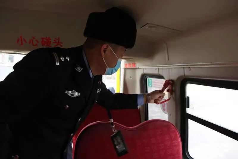 在校車安全大檢查中,交通、交警聯合執法人員對校車進行了安全檢查,核對相應手續是否齊全、是否符合安全運行條件,檢查車輛維護保養等情況,并叮囑駕駛人要謹慎駕駛,時刻把安全放在第一位。整改胎花較淺,應急藥品不全等隱患兩項。