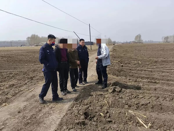 4月17日上午9時許,肇東市太平鄉光遠村居民劉某來到太平派出所報案稱自己承包的田地被同村的楊某給耕種了,劉某和楊某因為耕地的權屬問題產生了糾紛,為了防止村民因地屬問題激化矛盾,派出所民警決定親自前往現場,同時,民警聯系村干部、網格員等多方力量參與矛盾調處,并在雙方存在爭議的土地現場,當場進行測量,確定基石,得到雙方當事人的認同,成功化解一起群眾因土地糾紛產生的矛盾。