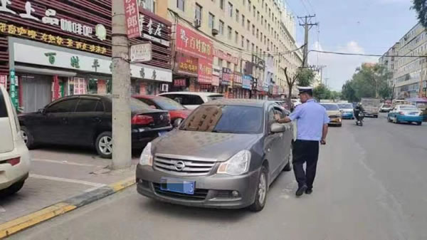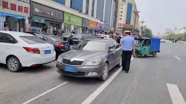 行動中,執勤民輔警按照“宣傳在先,處罰在后”原則,對車流、人流聚集的商業街,以及主干道道路違法停車行為突出的道路,實施高頻度、高密度的滾動整治。對短暫停車行為,駕駛員未下車的以教育勸離為主,引導將車輛規范停放到指定區域;對無視交通法規,在機動車道、人行道、非機動車道的違停車輛,現場拍照粘貼違法停車告知單,對違規車輛進行處罰;對阻礙交通通行能力,造成安全隱患的,堅決予以拖離;對長期占道的“僵尸車”,聯系車主督促其及時進行處理或主動將車開走,無法聯系到車主的或電話告知仍未處理的,統一將其拖離現場。