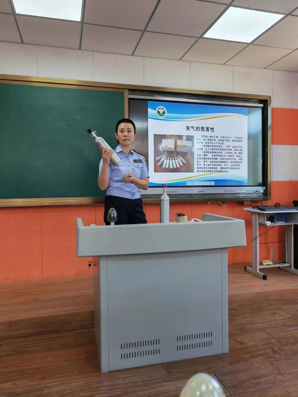 宣講中,禁毒民警結合專業知識和典型案例為同學們精心制作了禁毒宣傳課件。授課內容豐富、生動形象地向學生們講解毒品對個人、家庭、社會的危害,重點闡述了生活中識毒、防毒、拒毒技巧和方法,教育引導在校學生樹立正確的人生觀、法治觀、主動抵制不良誘惑,不要對毒品抱有好奇心和僥幸心。"