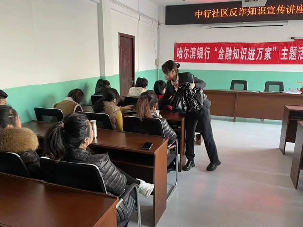 哈爾濱銀行綏化肇東支行踐行社會責任,助力全民反詐。哈爾濱銀行肇東支行今日走進“中行社區”開展“金融知識進萬家”主題宣傳活動。向社區居民宣講防范電信詐騙方法及技巧,宣傳斷卡行動的生活意義,并結合真實案例,生動形象的為社區居民描述電詐危" />