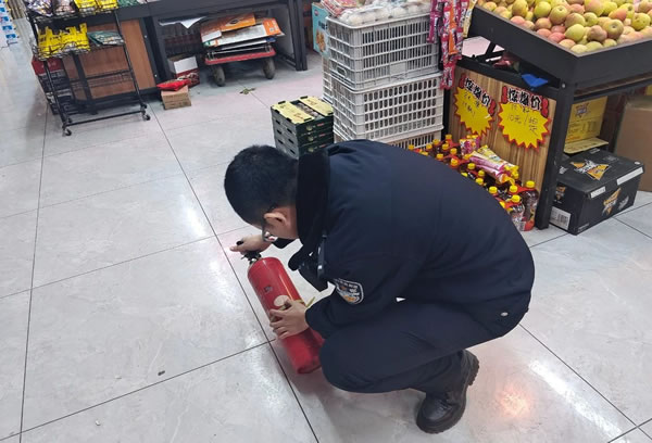 檢查中,民輔警深入轄區超市、小商鋪、加油站、學校、煙花爆竹、藥店等“九小場所”,重點對消防通道是否暢通、是否存放易燃易爆物品、消火栓是否完好、滅火器是否能正常使用進行檢查,堅持清查與重點部位監管相結合,加大對各類場所的安全檢查力度。對檢查出的安全隱患通過“及時改+回頭看”的方式,確保日常檢查行動環節形成閉環,保持消防安全隱患整治的高壓態勢,全力維護轄區火災形勢持續穩定。同時,民警向“九小場所”負責人宣傳了相關消防安全知識,要求“九小場所”負責人嚴格落實“人防、物防、技防”各項安防措施,嚴格落實好各項安全措施,加大消防安全巡查、自查力度,切實做到安全管理無漏洞、隱患排查無死角,消防安全時刻警鐘長鳴,容不得半點松懈。