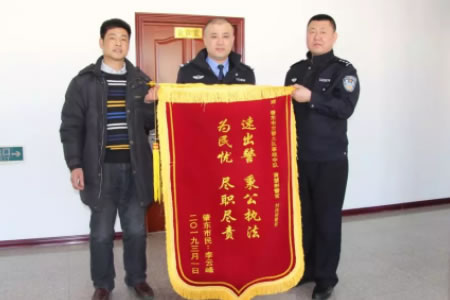 2019年3月1日,肇東市民李云峰來到市交警大隊(duì),將一面寫有“速出警秉公執(zhí)法,為民憂盡職盡責(zé)”的錦旗送給了黃慧斌和劉偉剛兩位警官,感謝他們不辭辛苦連續(xù)工作,還原事實(shí)真相,做出公正裁決,維護(hù)了法律的公平正義。