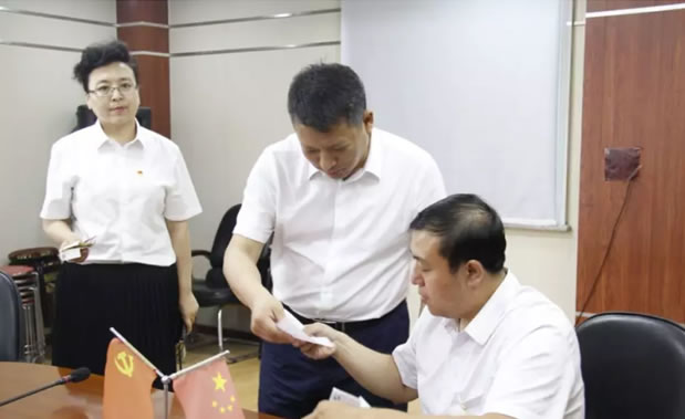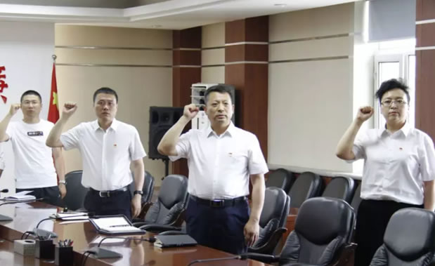 黨日活動中,與會黨員首先全體起立,面對黨旗進行莊嚴宣誓,重溫了入黨誓詞。